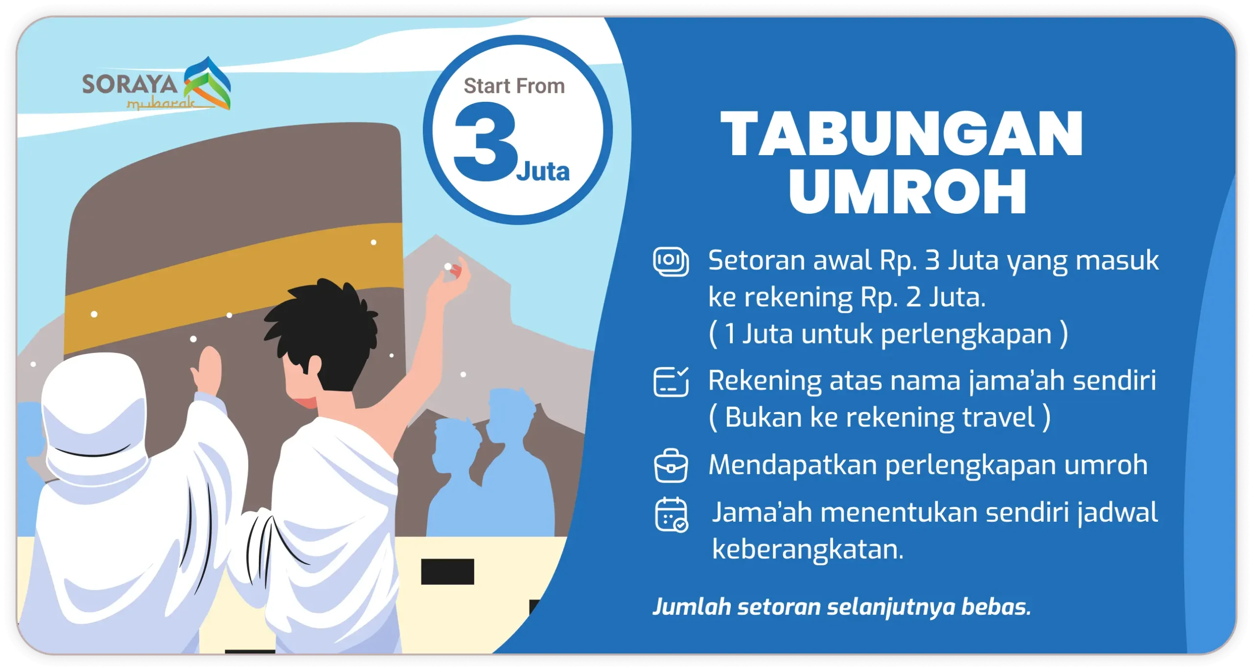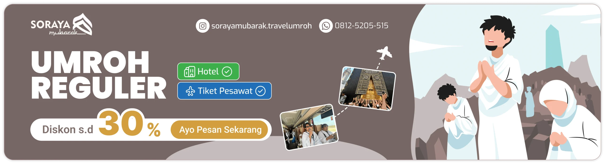 PT. Soraya Mubarak Tour adalah perusahaan penyelenggara ibadah umrah dan perjalanan wisata halal yang berkomitmen untuk memberikan pelayanan yang sebaik-baiknya dan pengalaman perjalanan yang nyaman dan mengesankan. Dalam perjalanan ibadah umrah kepuasan, keamanan dan kenyamanan Para Tamu Allah sangat kami utamakan.